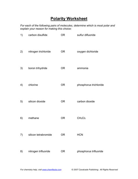 Polarity Worksheet With Answers Work. Arrange the bonds in each of the following sets in order of increasing polarity: Web polar and non polar.