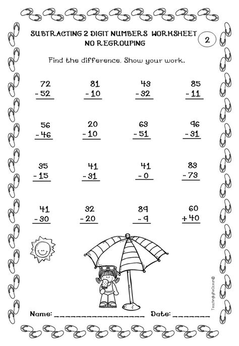 Free Subtraction Printables For Summer